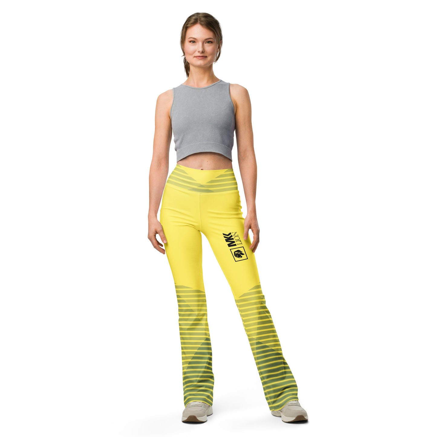 Designed to enhance your figure, these trendy leggings feature a high waist and a butt-lifting cut. The flared leg bottoms add a touch of style and make the leggings comfortable. Wear them on a walk, to the gym, or style them up with a bomber jacket or hoodie.