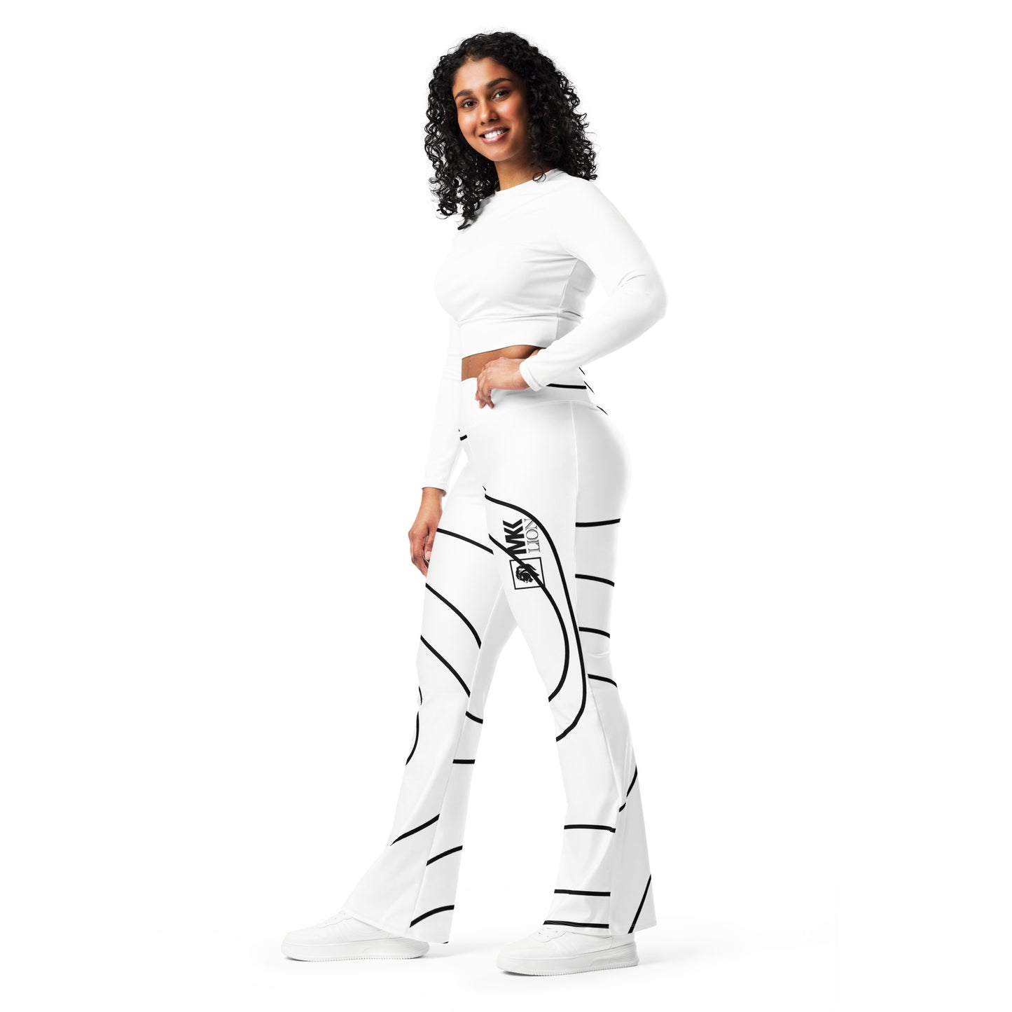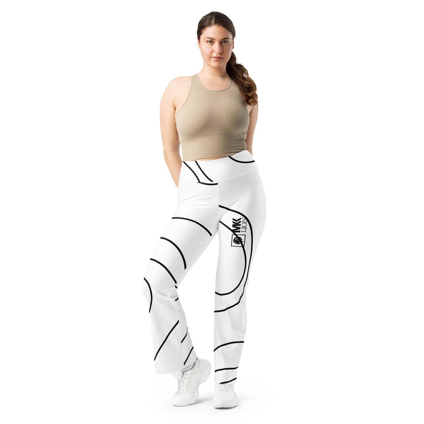Designed to enhance your figure, these trendy leggings feature a high waist and a butt-lifting cut. The flared leg bottoms add a touch of style and make the leggings comfortable. Wear them on a walk, to the gym, or style them up with a bomber jacket or hoodie.