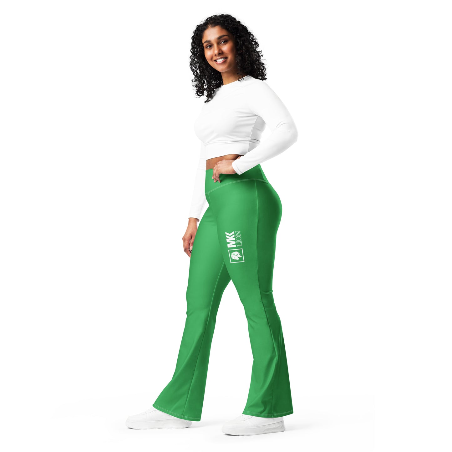 Designed to enhance your figure, these trendy leggings feature a high waist and a butt-lifting cut. The flared leg bottoms add a touch of style and make the leggings comfortable. Wear them on a walk, to the gym, or style them up with a bomber jacket or hoodie.