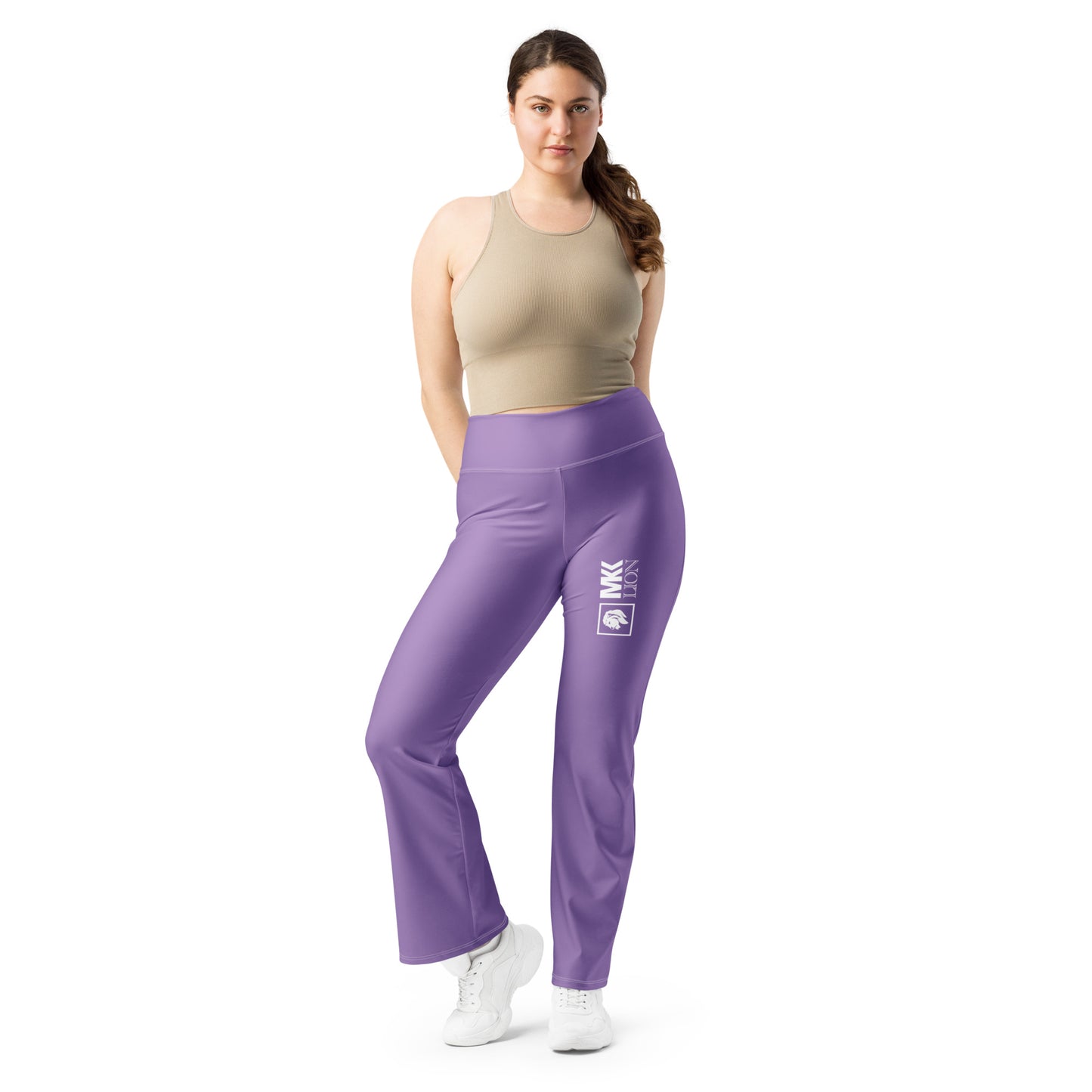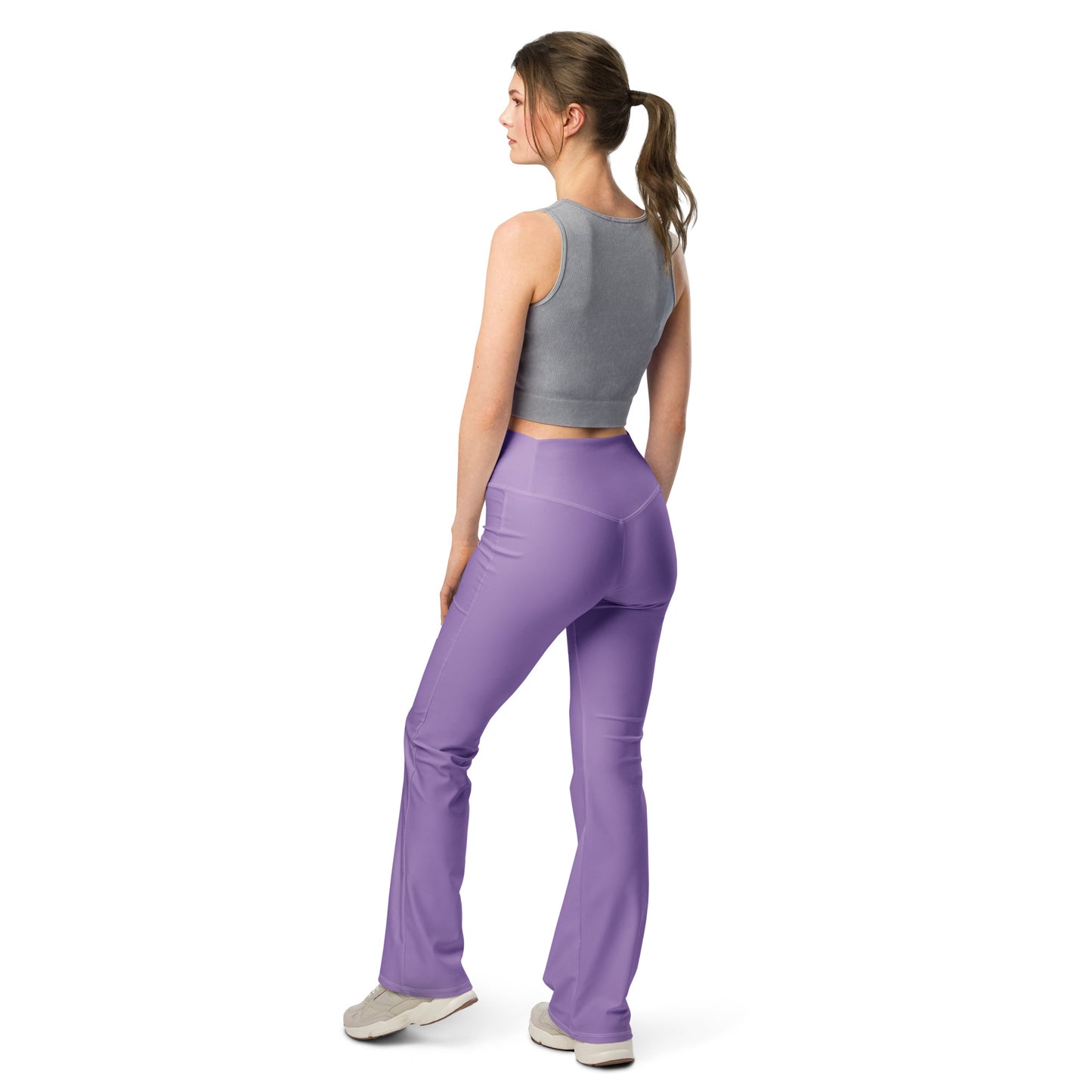 Designed to enhance your figure, these trendy leggings feature a high waist and a butt-lifting cut. The flared leg bottoms add a touch of style and make the leggings comfortable. Wear them on a walk, to the gym, or style them up with a bomber jacket or hoodie.