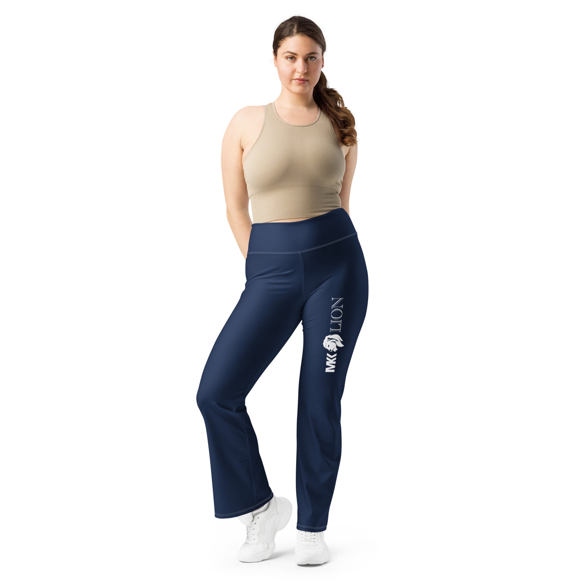 Designed to enhance your figure, these trendy leggings feature a high waist and a butt-lifting cut. The flared leg bottoms add a touch of style and make the leggings comfortable. Wear them on a walk, to the gym, or style them up with a bomber jacket or hoodie.