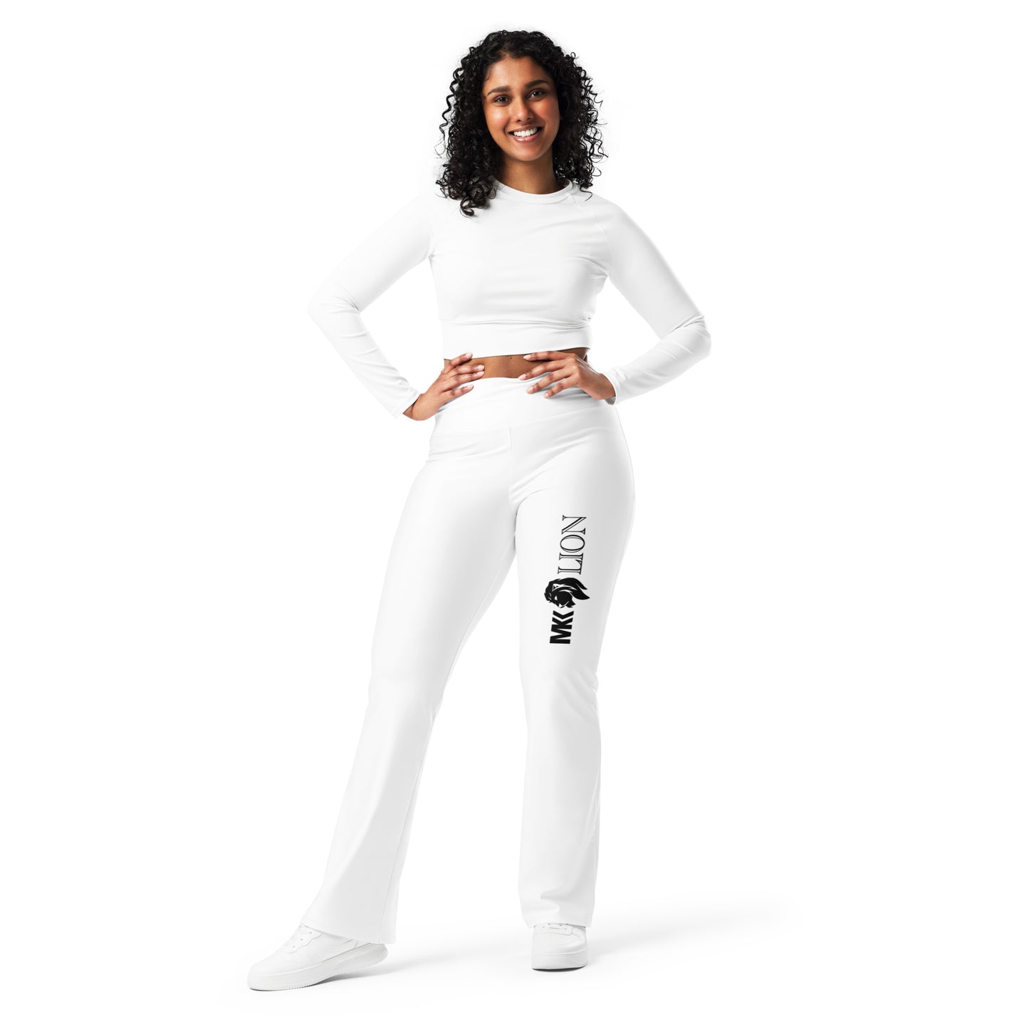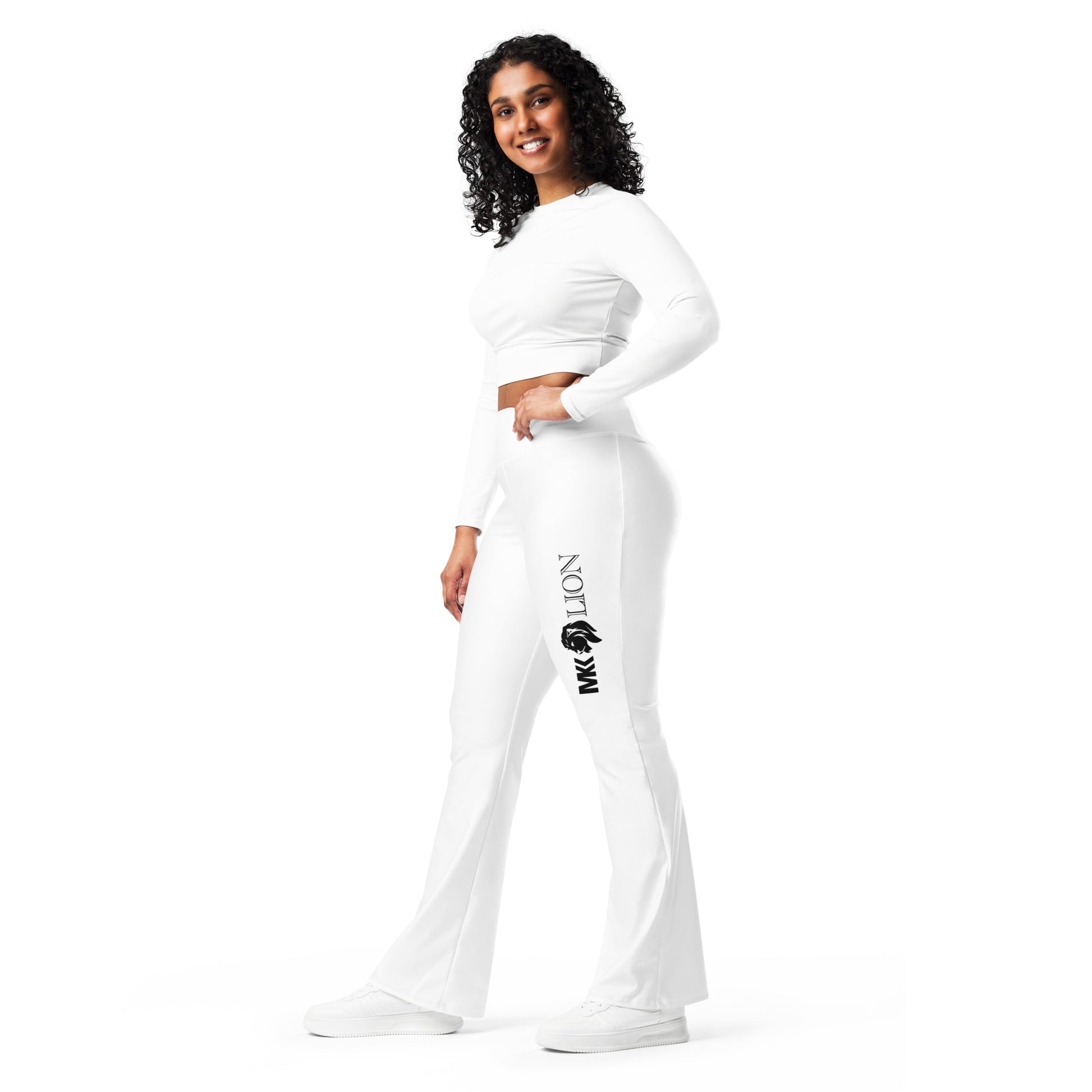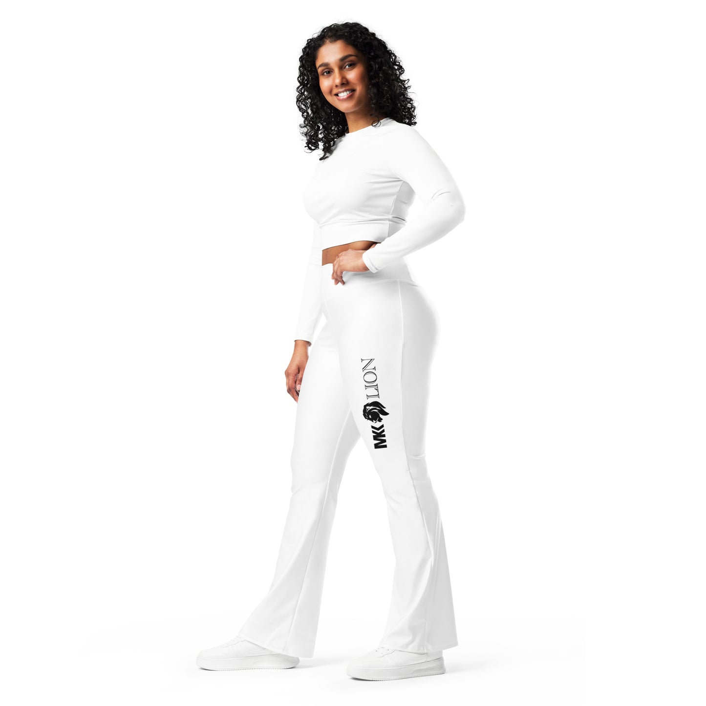 Designed to enhance your figure, these trendy leggings feature a high waist and a butt-lifting cut. The flared leg bottoms add a touch of style and make the leggings comfortable. Wear them on a walk, to the gym, or style them up with a bomber jacket or hoodie.