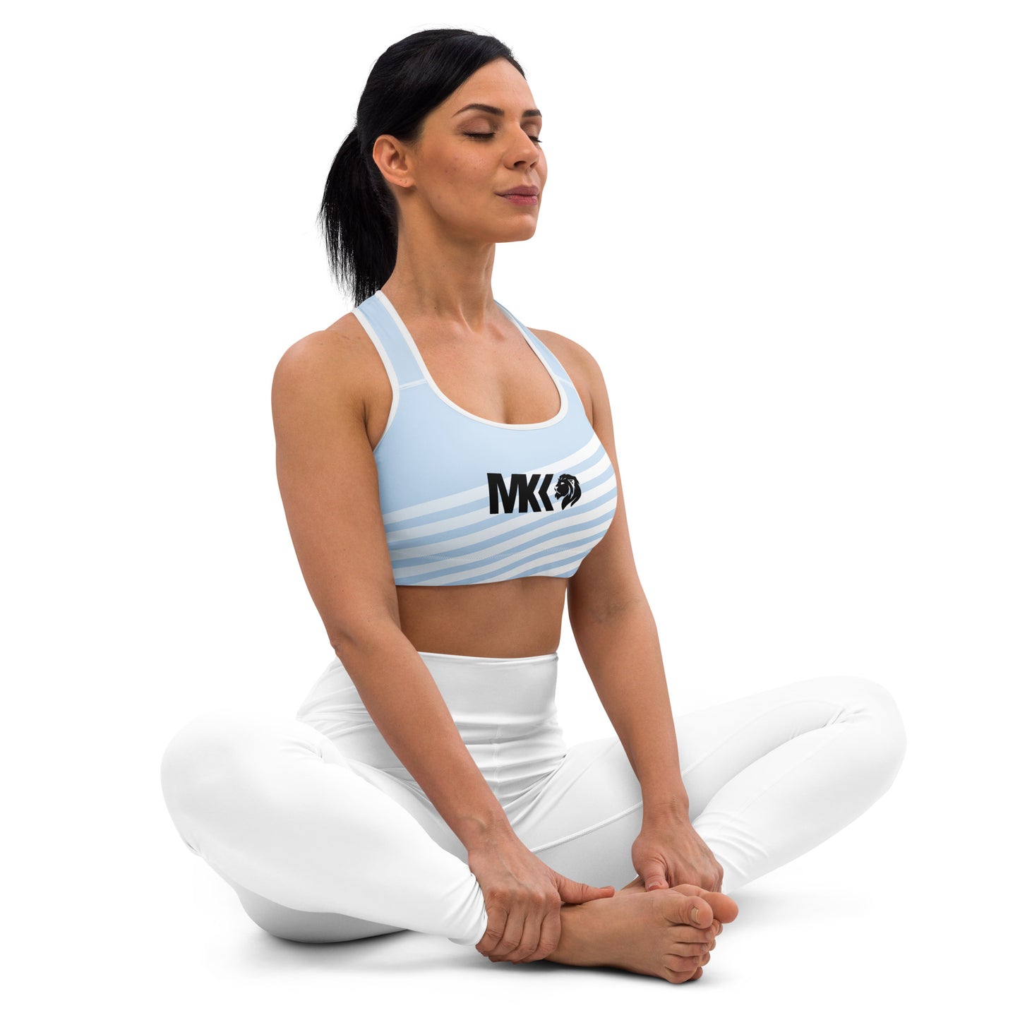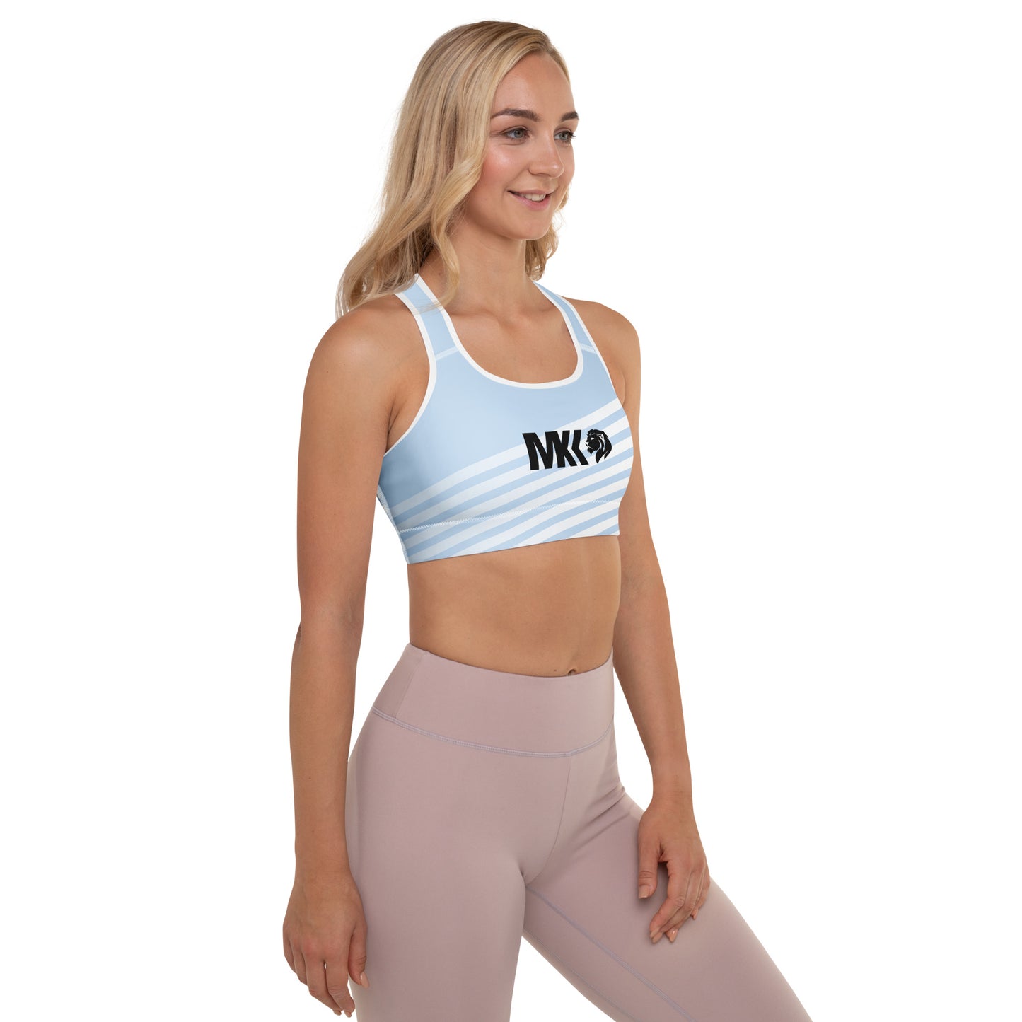 Get the perfect bra for your workouts! This comfy bra has a soft moisture-wicking fabric, extra materials in shoulder straps, and removable padding for maximum support.