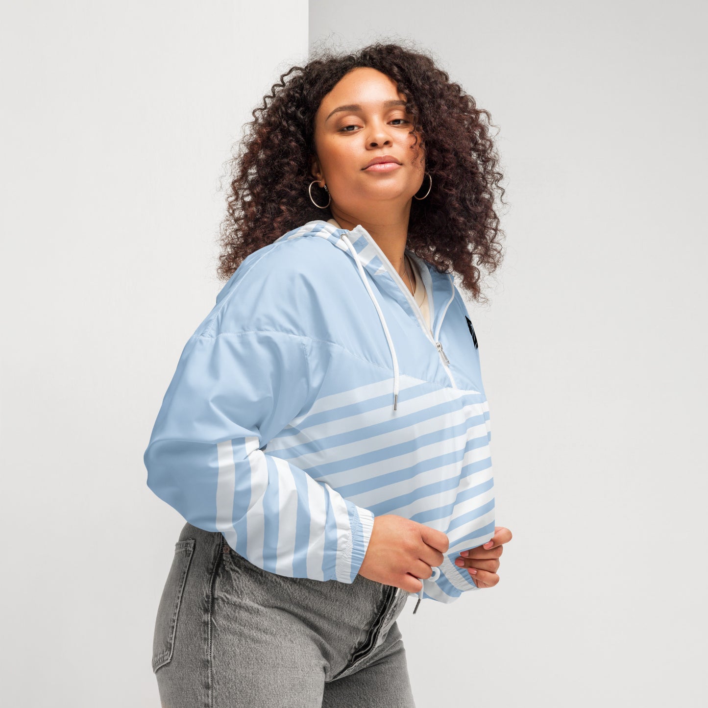 Hike in style without the rain getting in the way—this cropped windbreaker is lightweight, waterproof, and suitable for every kind of adventure. Features include side-slit pockets, breathable mesh lining, and adjustable drawcords on the hood and waist to support all your stylish outdoor looks.