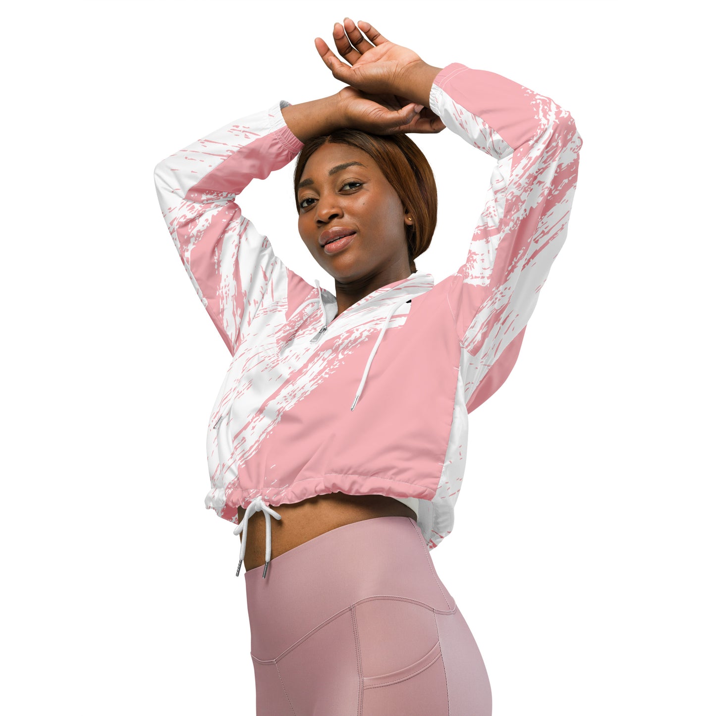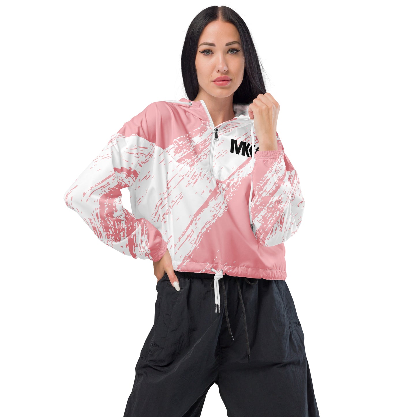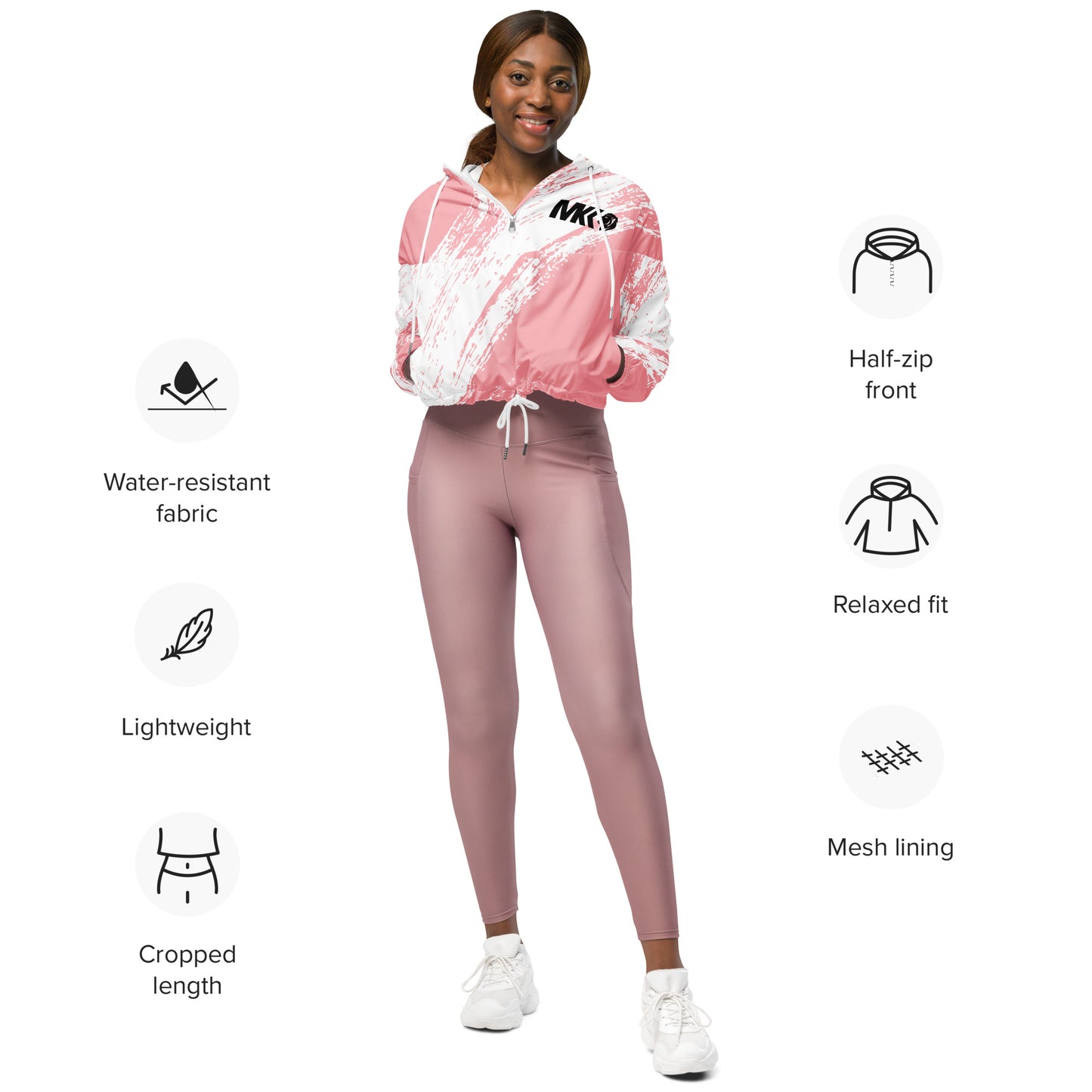 Hike in style without the rain getting in the way—this cropped windbreaker is lightweight, waterproof, and suitable for every kind of adventure. Features include side-slit pockets, breathable mesh lining, and adjustable drawcords on the hood and waist to support all your stylish outdoor looks.