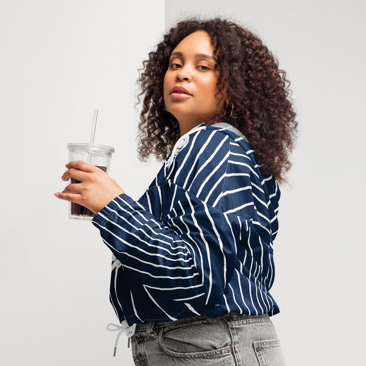 Hike in style without the rain getting in the way—this cropped windbreaker is lightweight, waterproof, and suitable for every kind of adventure. Features include side-slit pockets, breathable mesh lining, and adjustable drawcords on the hood and waist to support all your stylish outdoor looks.