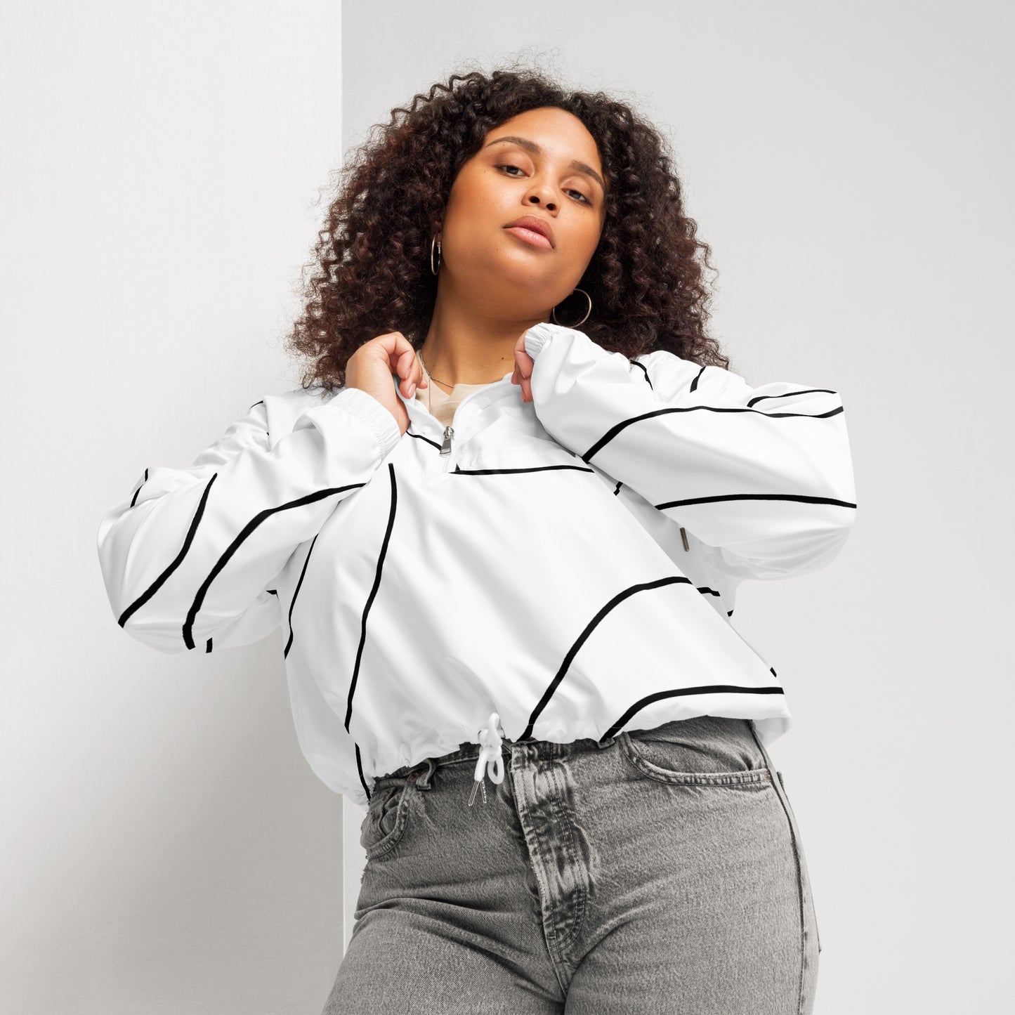 Hike in style without the rain getting in the way—this cropped windbreaker is lightweight, waterproof, and suitable for every kind of adventure. Features include side-slit pockets, breathable mesh lining, and adjustable drawcords on the hood and waist to support all your stylish outdoor looks.
