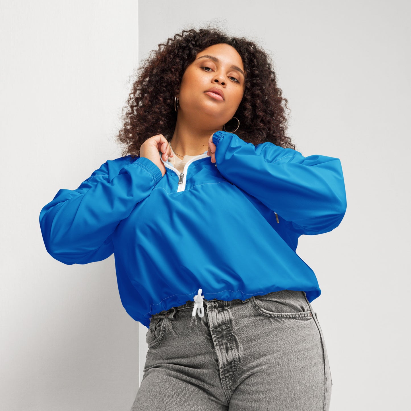 Blue Cropped Windbreaker Jacket 01