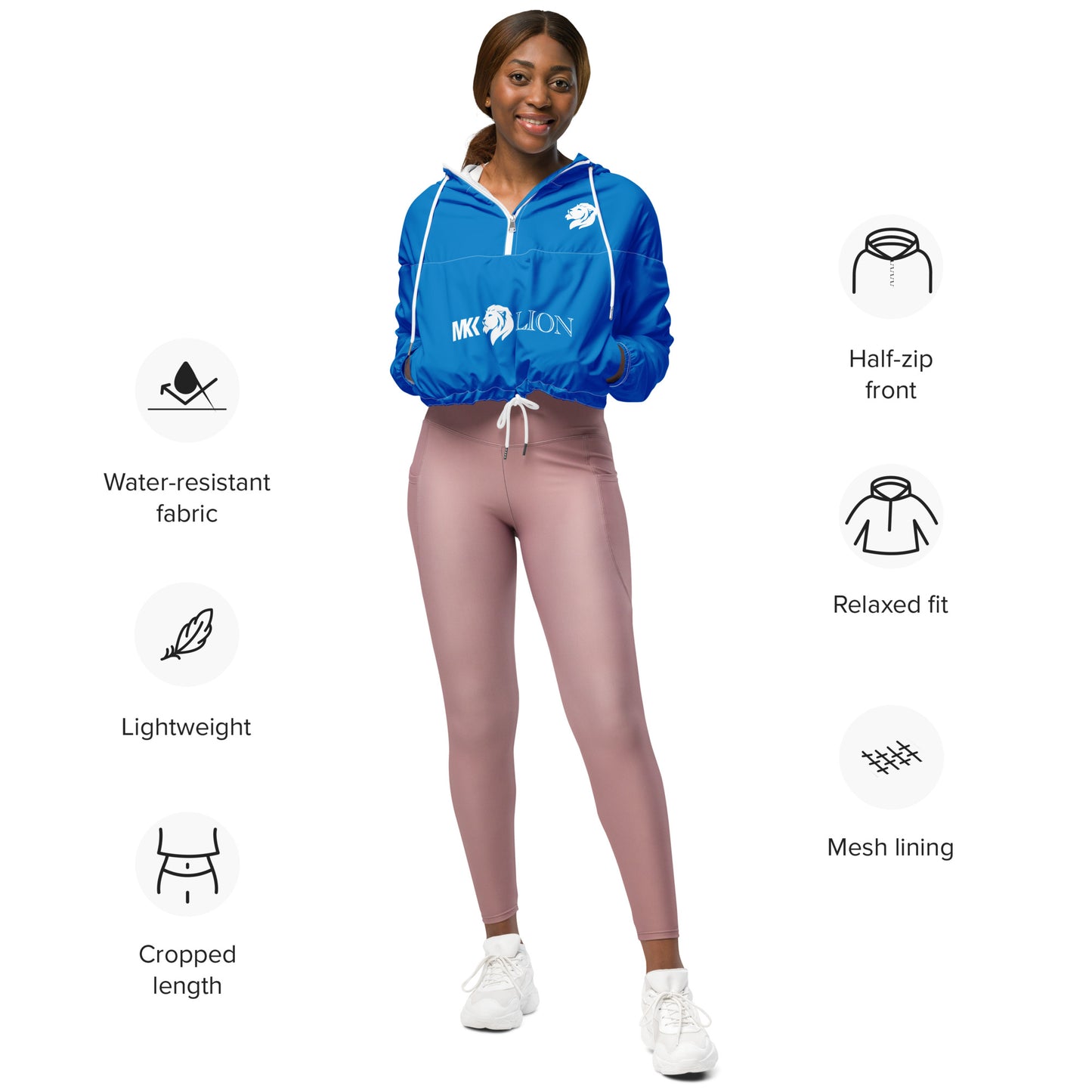 Hike in style without the rain getting in the way—this cropped windbreaker is lightweight, waterproof, and suitable for every kind of adventure. Features include side-slit pockets, breathable mesh lining, and adjustable drawcords on the hood and waist to support all your stylish outdoor looks.