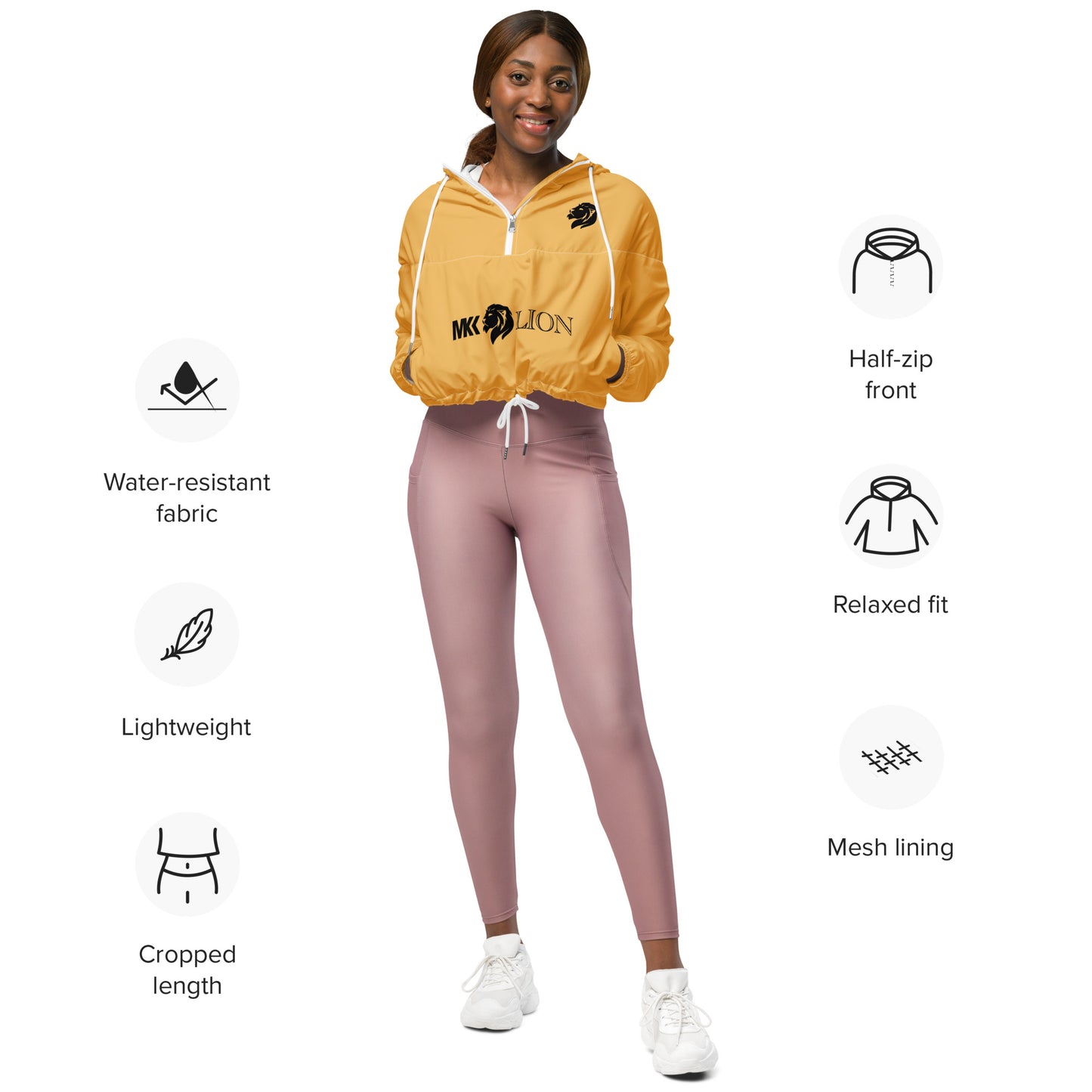 Hike in style without the rain getting in the way—this cropped windbreaker is lightweight, waterproof, and suitable for every kind of adventure. Features include side-slit pockets, breathable mesh lining, and adjustable drawcords on the hood and waist to support all your stylish outdoor looks.