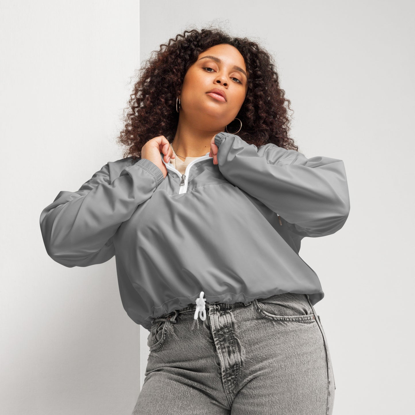 Hike in style without the rain getting in the way—this cropped windbreaker is lightweight, waterproof, and suitable for every kind of adventure. Features include side-slit pockets, breathable mesh lining, and adjustable drawcords on the hood and waist to support all your stylish outdoor looks.