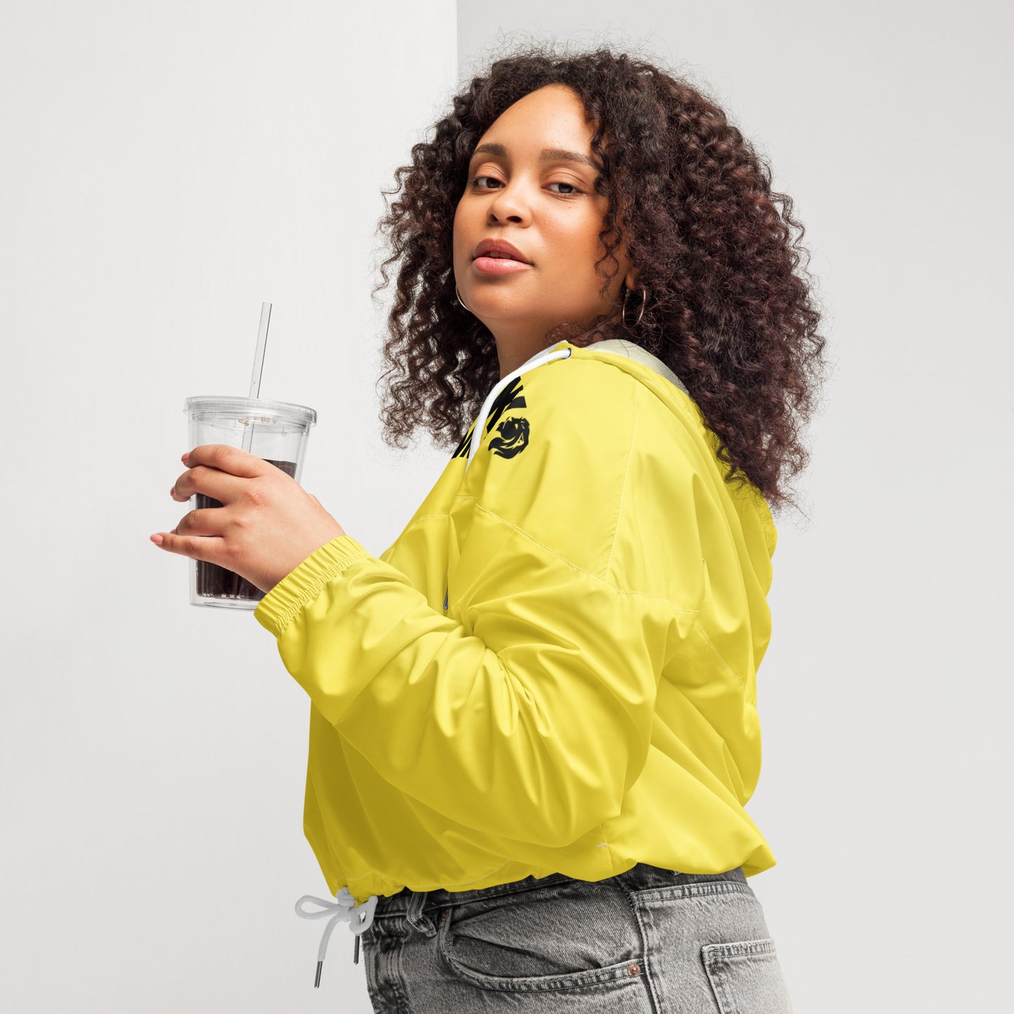Hike in style without the rain getting in the way—this cropped windbreaker is lightweight, waterproof, and suitable for every kind of adventure. Features include side-slit pockets, breathable mesh lining, and adjustable drawcords on the hood and waist to support all your stylish outdoor looks.